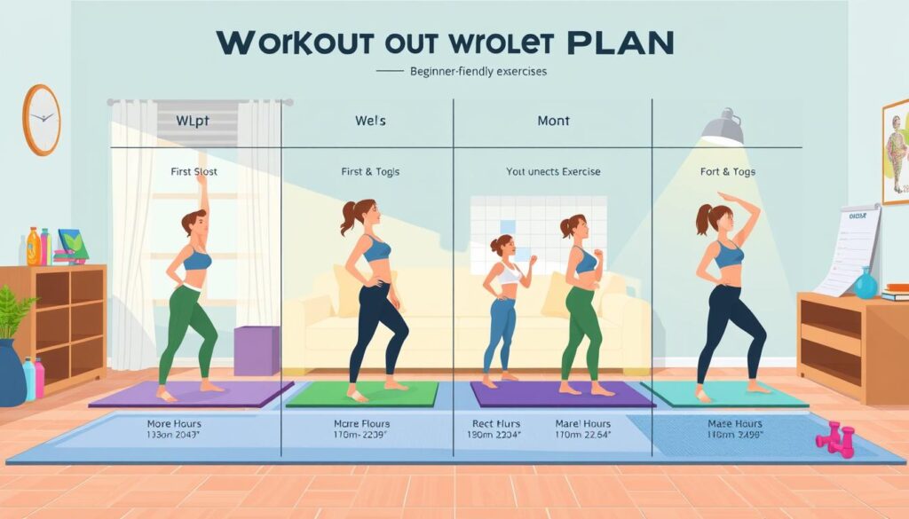 Creating a workout plan for beginners is all about being consistent. It’s important to find a routine that fits your lifestyle and helps you reach your weight loss goals. A good workout schedule keeps you on track and makes sure you get the most out of your exercises.